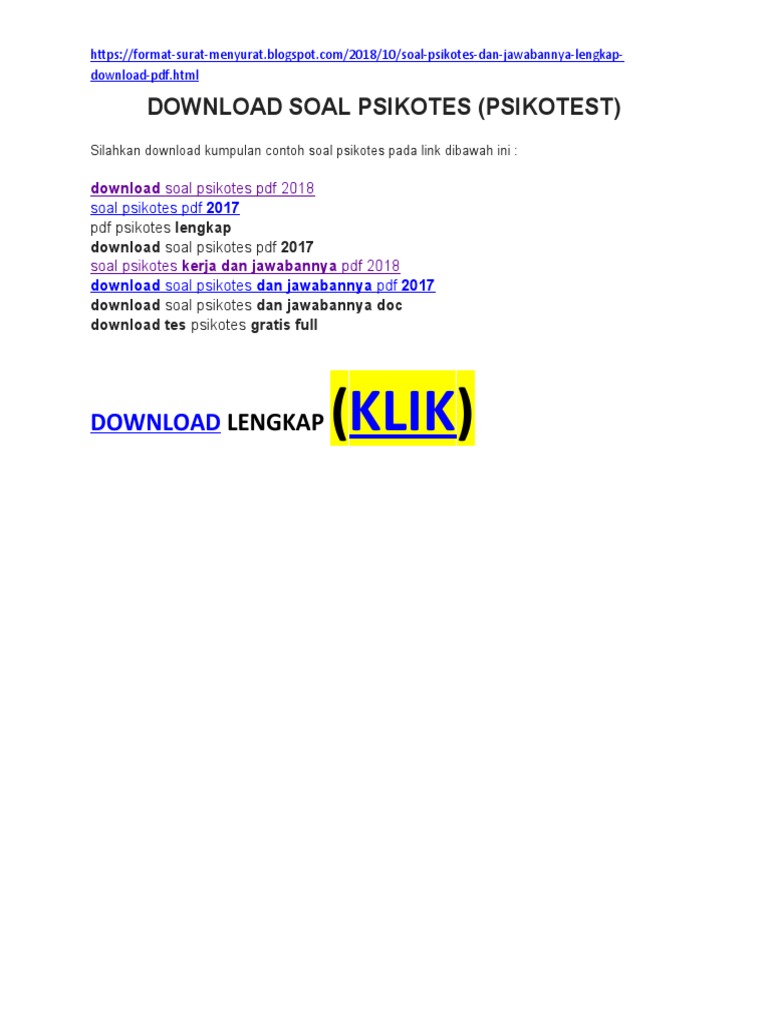 Last Ned Soal Psikotes Dan Jawabannya Pdf Gratis